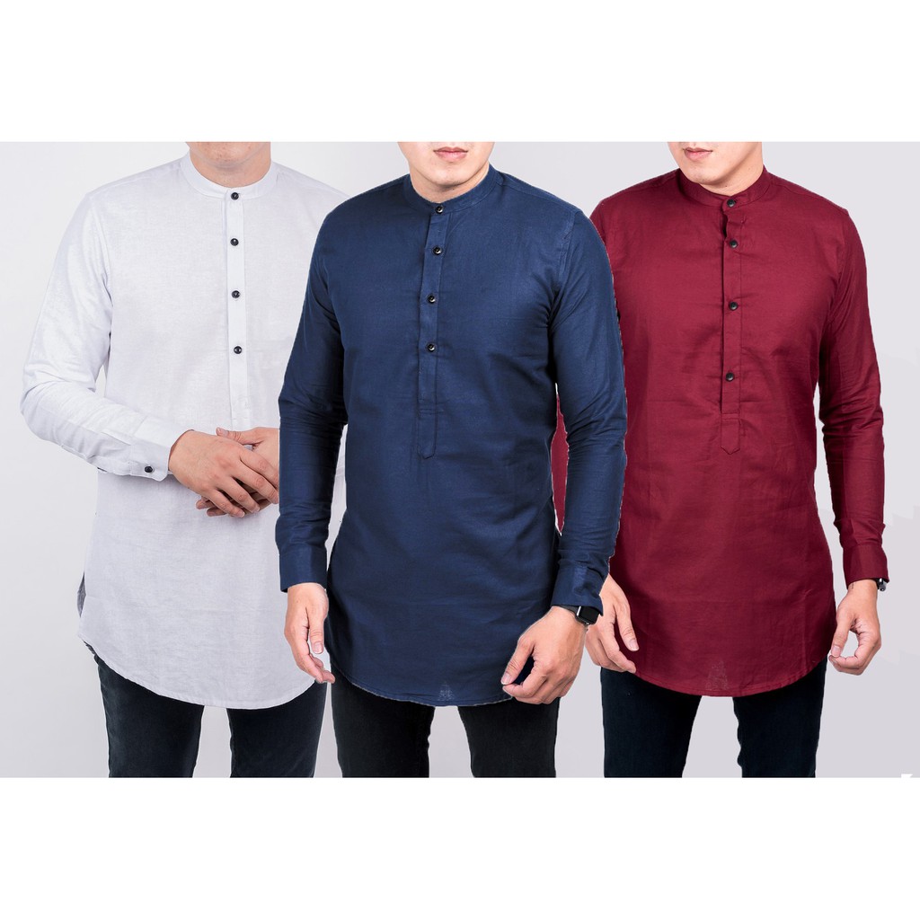 Jual Baju Koko Kurta Pria Lengan Panjang Putih Biru Navy Merah Maroon Hitam Aneka Warna Ada Big Size Indonesia Shopee Indonesia