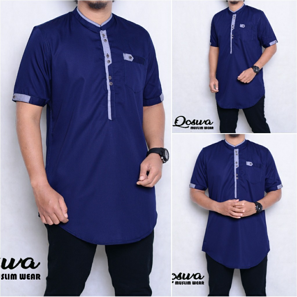 Jual Koko Kurta Pakistan Pria Qurta Tangan Pendek List Toyobo Cowok Original Qoswa Warna Biru Dongker Indonesia Shopee Indonesia