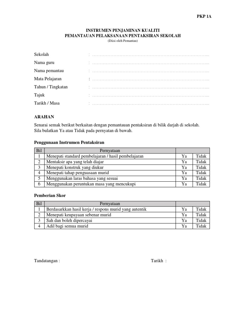 Borang Pemantauan Ps Pkp1a Pdf Pdf